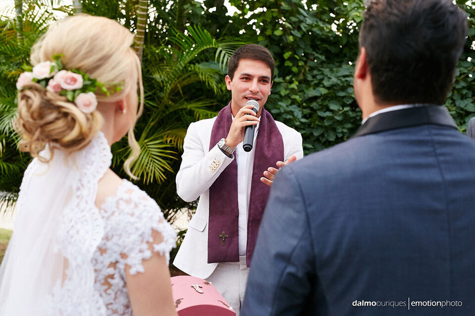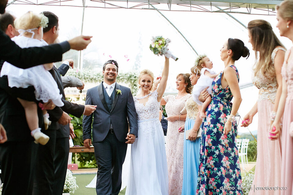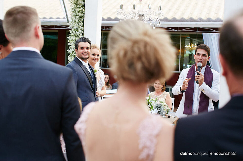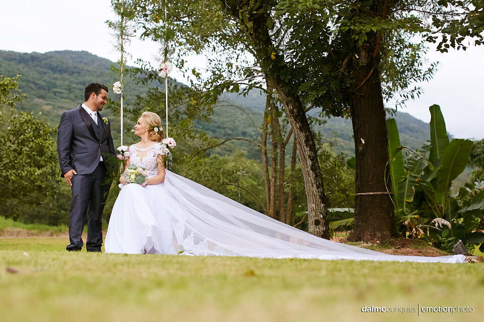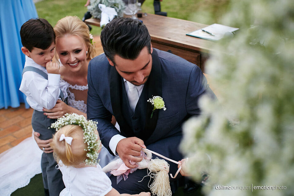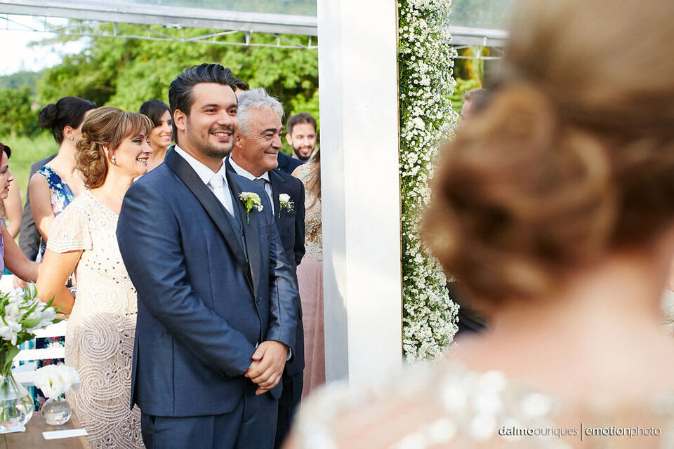 Ficha Técnica do Casamento em Florianópolis: Fotografia: Dalmo Ouriques - Fotografia de Casamento Cerimonial: A Fada Madrinha Música: Geraldo Martins Local Celebração - Estância Biguaçu Local da Festa - Estância Biguaçu Cabelo e Maquiagem: La Duarte Bolo e Doces: Nancy doces. Celebrante:Juliano